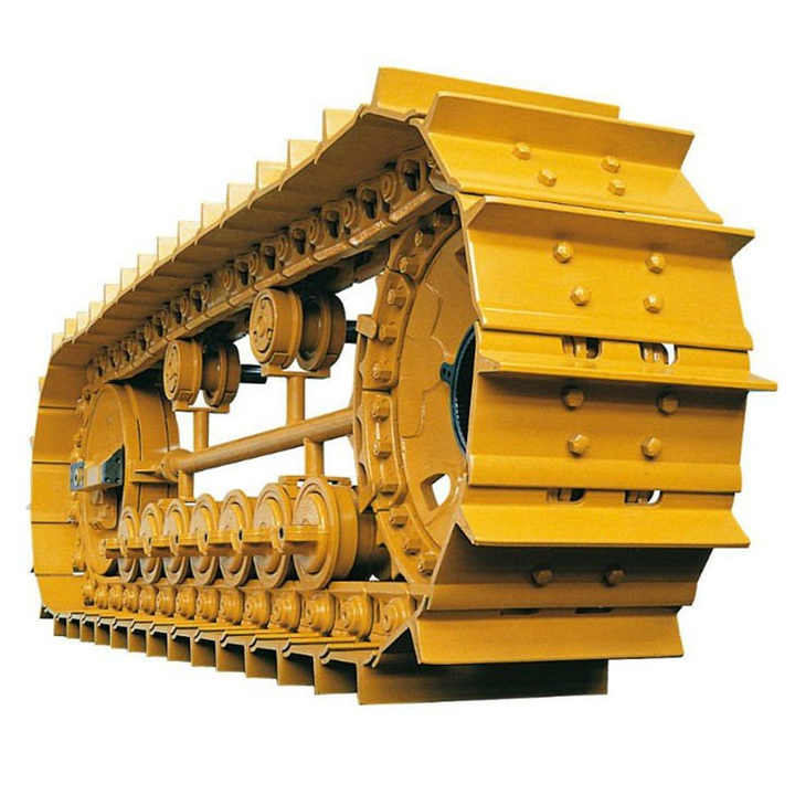 Гусеничные цепи бульдозеров обеспечивают тягу и устойчивость на нестабильных грунтах, распределяя нагрузку по большой площади. Конструкция включает звенья, траки, пины и втулки, соединенные в замкнутую цепь. Материалы – легированная сталь 50Mn или 35MnB с термообработкой (твердость 45-55 HRC), что позволяет выдерживать нагрузки до 100 тонн и абразивный износ. Ширина трака варьируется от 400 до 900 мм, шаг звена – 175-228 мм, а высота грунтозацепов – 50-80 мм для улучшения сцепления.